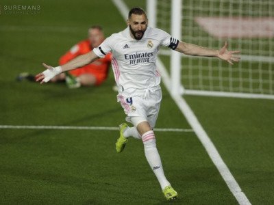 레알 마드리드의 카림 벤제마가 10일(현지시간) FC바르셀로나와의 2020~2021 스페인 라리가 30라운드(홈)에서 전반 13분 선제골을 터뜨린 뒤 세리머니를 하고 있다. 마드리드/AP 연합뉴스[스포츠서울 김경무전문기자] 악천후 속에 열린 246번째 ‘엘 클라시코’에서 레알 마드리드(레알)가 승리를 거두고 마침내 정규리그 1위를 탈환했다.레알은 10일(현…