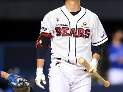 두산 정수빈이 8일 서울 잠실야구장에서 열린 2021 KBO리그 두산 베어스와 삼성 라이온즈의 경기 7회말 1사만루 헛스윙 후 아쉬워하고 있다. 2021. 4. 8.잠실 | 최승섭기자 thunder@sportsseoul.com