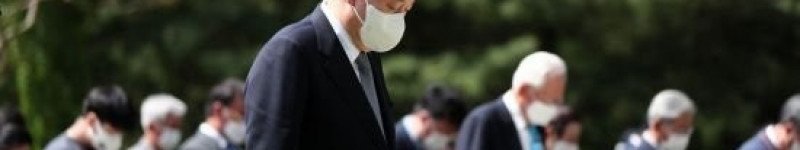 윤석열 대통령 당선인이 28일 오전 충남 아산 현충사에서 열린 이순신 장군 탄신 477주년 기념 다례제에서 헌화하고 있다. /인수위사진기자단윤석열 대통령 당선인이 28일 충남 아산…