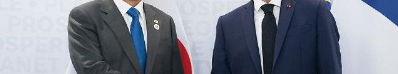 문재인 대통령이 30일(현지시간) 이탈리아 로마 누볼라 컨벤션센터 양자회담장에서 열린 한-프랑스 정상회담에서 프랑스 에마뉘엘 마크롱 대통령과 악수를 하고 있다. [사진=연합뉴스]문…