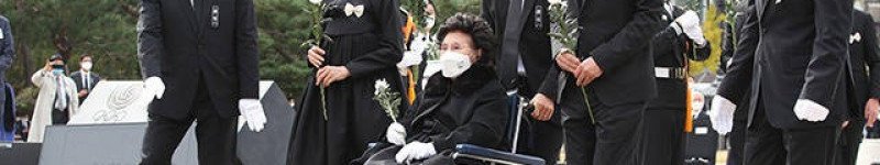 고 노태우 전 대통령 국가장 영결식이 30일 오전 서울 송파구 올림픽공원에서 열린 가운데 부인 김옥숙 여사와 장녀 노소영 아트센터 나비 관장, 장남 노재헌 변호사등 가족들이 헌화를…