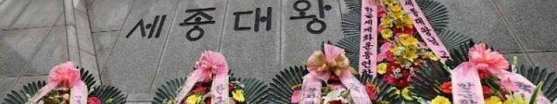 한글날을 하루 앞둔 지난 8일 오후 서울 광화문 세종대왕상 앞에 한글날을 맞이하는 화환들이 놓여 있다. [사진=연합뉴스]문재인 대통령은 9일 “한글이 끝내 남북의 마음도 따뜻하게 …