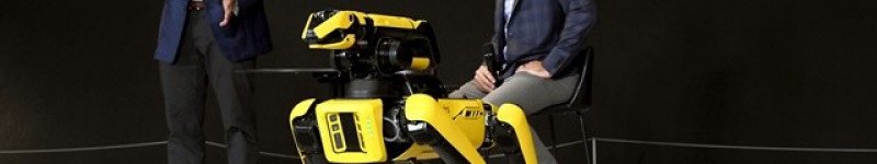 로버트 플레이터 보스턴다이내믹스 최고경영자(왼쪽)가 4족 보행로봇 '스팟'을 시연하고 있다. /현대자동차그룹 제공보스턴다이내믹스 CEO "현대차그룹과 다양한 분야서 협업"[더팩트ㅣ…